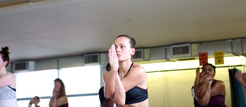 For balancing postures, where you are looking at the mirror, this could be at your third eye, throat chakra or solar plexis. For a posture such as triangle where you are looking upwards, the gaze is at the tips of the fingers. For a posture such as balancing stick, where you are looking down, the gaze is four feet ahead of you on the floor. Keeping the gaze looking upwards keeps your energy up and within, rather than draining away and becoming scattered.